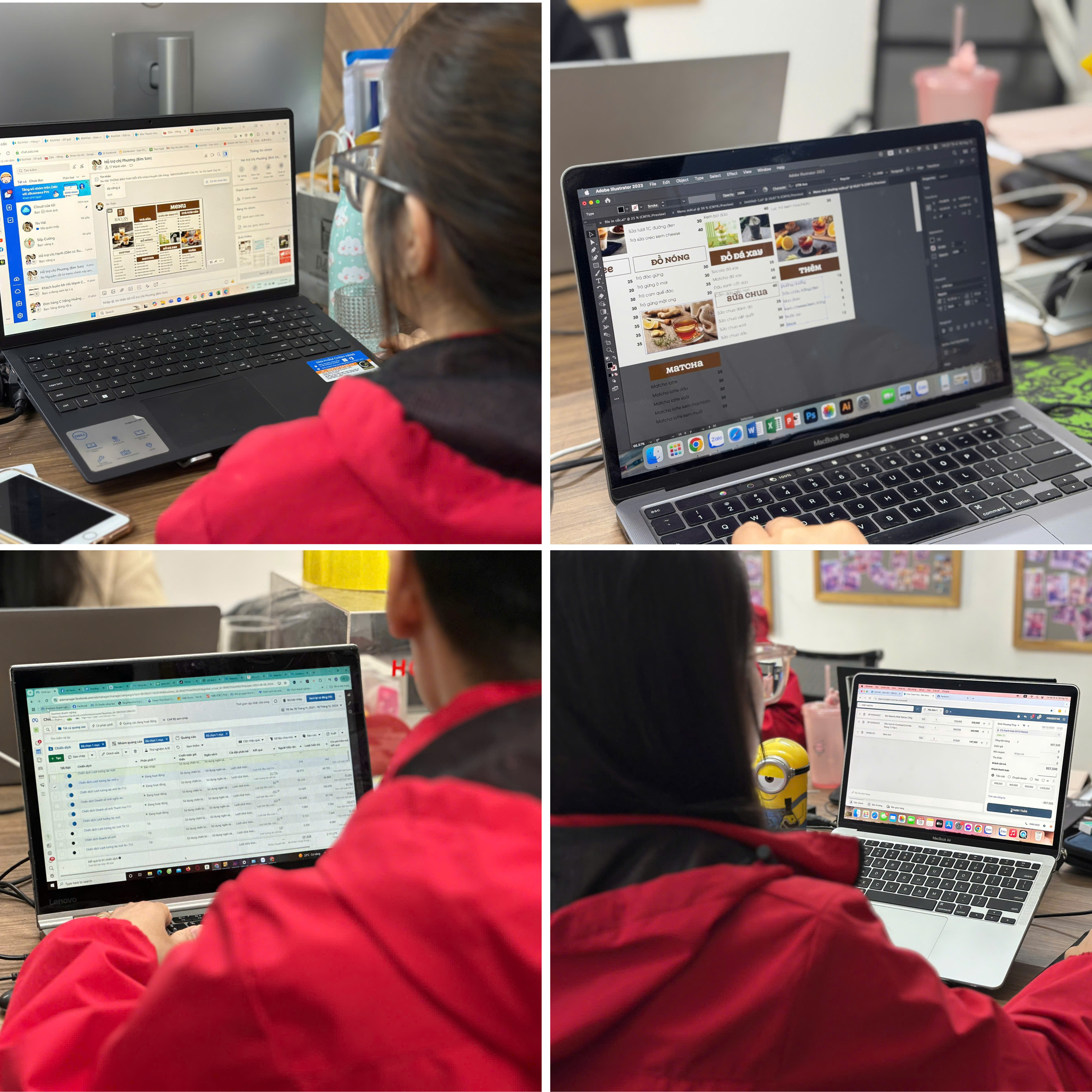 Học viên khóa học thực chiến tại quán cà phê (bên phải)